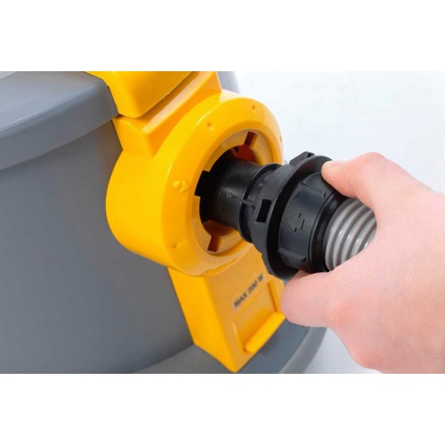 Presa per elettrospazzola. ttima maneggevolezza garantita dalle ruote anteriori pivottanti e da quelle posteriori fisse e di grande diametro.